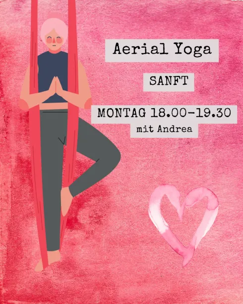 Aerial Yoga mit Andrea. Du möchtest Teil einer fixen Aerial Yoga Gruppe sein und jede Woche eine spannende und entspannende Aerial Yoga Praxis erleben dann bist du genau richtig hier.