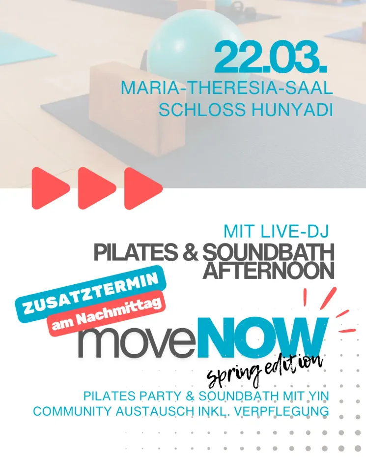 Aufgrund der großen Nachfrage gibt es einen Zusatztermin am Nachmittag unseres beliebten moveNOW Spring Edition Events! Freu dich auf einen ganz besonderen Wohlfühl-Nachmittag in einzigartiger Atmosphäre im Maria-Theresia-Saal im Schloss Hunyadi.