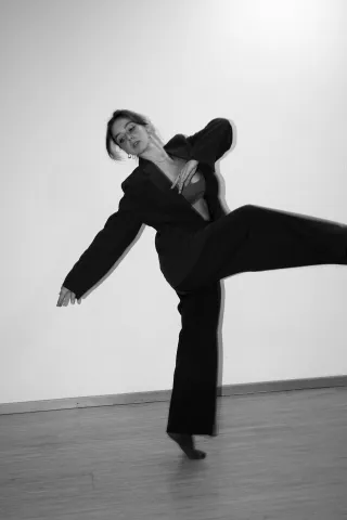 Nach einem Warm-up folgen Technikübungen zu Dynamik, Kontrolle und Ausdruck. Across-the-Floor-Sequenzen greifen bereits Elemente der späteren Choreografie auf und bauen sie Schritt für Schritt auf.