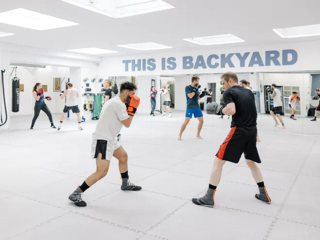 Backyard 1040Das klassische Backyard Fitnessbox Training für alle, die eine körperliche Herausforderung suchen und die Schönheit des Boxsports in einem geschützten Umfeld für sich entdecken wollen. Unsere Fitnessboxstunden beginnen immer mit einem Warm Up und Mobilisation, um die Gelenke und Muskeln auf das Training vorzubereiten. Je nach Trainer und den anwesenden Mitgliedern wird das Training mit verschiedenen Fitnessübungen, Schattenboxen, Boxtechnik, Übungen in der Partnerarbeit und am Boxsack gestaltet. Eines ist fix: in jeder Fitnessboxstunde gibt es eine Menge Spaß, Schwitzen und Schlagen ;) · Niveau: offenes Training für alle! Das Level wird an die anwesenden Mitglieder angepasst. · Jedes Training wird von einem unserer Trainer gestaltet und geführt - eigenständiges Trainieren außerhalb der Gruppe ist nicht erlaubt. · Bitte eigene Boxhandschuhe und Bandagen mitbringen! · Die Teilnehmerzahl des Training ist limitiert, also bitte unbedingt im Vorhinein anmelden. · Falls du doch nicht kommen kannst, melde dich bitte vom Training ab, damit andere Mitglieder einen Platz im Training bekommen.