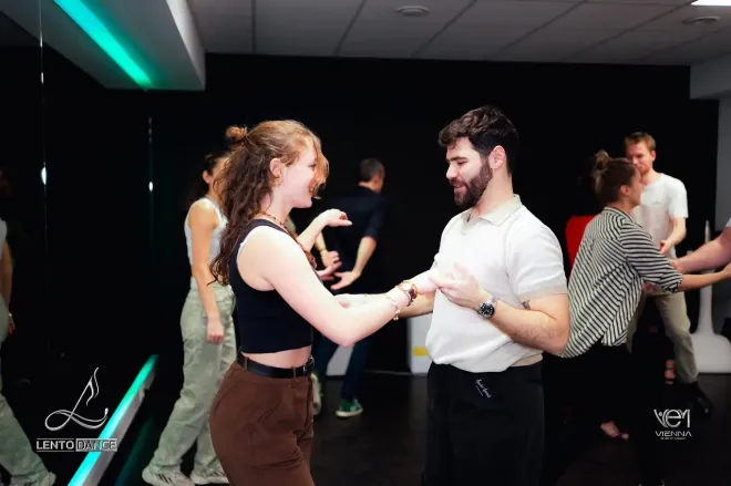 Lento DanceIn a Salsa on 1 class for beginners, you'll learn the basic footwork and timing of the dance, focusing on the rhythm and steps of the "On 1" style, where movements align with the upbeat. The class introduces simple turns, partner connection, and how to move confidently to the music while keeping the energy fun and upbeat. By the end, you'll feel more comfortable on the dance floor and ready to practice your newfound skills with a partner.