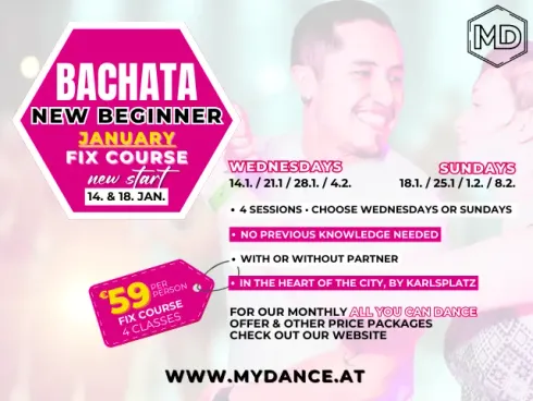 Unsere leidenschaftlichen Lehrer, die herzliche Community und unsere bewährten Lehrmethoden machen uns zur ersten Adresse für Bachata und Salsa in Wien. Erlebe die Magie des Tanzes in einer Atmosphäre, die sich wie Zuhause anfühlt. Unsere Philosophie ist es, DEIN LEBEN ZU BEREICHERN und gleichzeitig eine großartige, POSITIV VERBUNDENE COMMUNITY aufzubauen! Wir tun dies, indem wir unsere LIEBE, LEIDENSCHAFT und unser WISSEN mit dir teilen. Unser INSPIRIERENDES TEAM wird dich dabei unterstützen, DEINE FÄHIGKEITEN – sowohl im Tanz als auch darüber hinaus – zu entwickeln, damit du EIN BESSERER TÄNZER UND MENSCH wirst. Und das alles mit einem Lächeln und jeder Menge Spaß!••••••••••••••••• ENGLISH >>>•••••••••••••Our passionate instructors, warm community, and proven teaching methods make us the go-to place for Bachata and Salsa in Vienna. Experience the magic of dance in an atmosphere that feels like home. Our philosophy is to ENRICH YOUR LIFE while building a STRONG, POSITIVE COMMUNITY! We do this by sharing our LOVE, PASSION, and KNOWLEDGE with you. Our INSPIRING TEAM will help you develop YOUR SKILLS – not just in dance but beyond – to become a BETTER DANCER AND PERSON. And all of this with a smile and lots of fun!