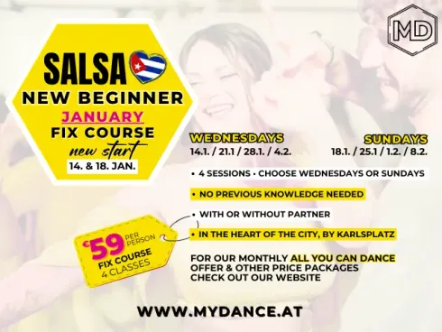 Als kompletter Anfänger brauchst du keine Vorkenntnisse – und du kannst sowohl mit als auch ohne Partner kommen. Falls du keinen Tanzpartner hast, keine Sorge! In der Regel sind Follower und Leader bei uns ausgeglichen, und dank unseres Rotationssystems wechselst du regelmäßig den Partner (niemand muss lange warten). Falls du lieber mit deinem eigenen Partner tanzen möchtest, ist das natürlich auch völlig in Ordnung! Falls du bereits Tanzerfahrung hast und dir unsicher bist, welches Level für dich passt, helfen wir dir gerne, dein Level direkt im Studio einzuschätzen. Weitere Informationen findest du auf unserer Website im Newcomers Guide und in den FAQ. (www.mydance.at)••••••••••••••••• ENGLISH >>>•••••••••••••As a complete beginner, you don’t need any prior experience, and you can join with or without a partner. No partner? No problem! In most cases, our leader-to-follower ratio is balanced, and we use a rotation system, so partners switch regularly (no one is left waiting for long). If you prefer to stay with your own partner, that’s absolutely fine too! If you already have dance experience and are unsure about your level, we’re happy to assess it directly at the studio. For more details, check out our Newcomers Guide and FAQ on our website. www.mydance.at