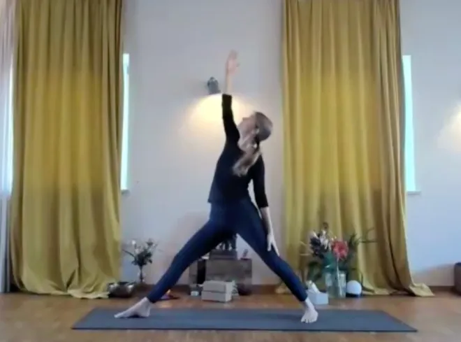 Yoga im Fluss – Vorbereitend wird der Körper gut in leichten und kreativen Bewegungsabfolgen aufgewärmt. Im Flowteil üben wir kräftigende Haltungen in längeren Sequenzen mit Musik.Dehnung gegen Ende der Stunde macht die körperliche Praxis komplett. Es finden sich immer mal wieder komplexere Abfolgen oder Asanas - diese können mit Leichtigkeit ausprobiert werden: Alles kann, nichts muss. Pranayama und kurze Meditation, auch mal ein Chant, sind Teil dieser 75-minütigen Stunde.